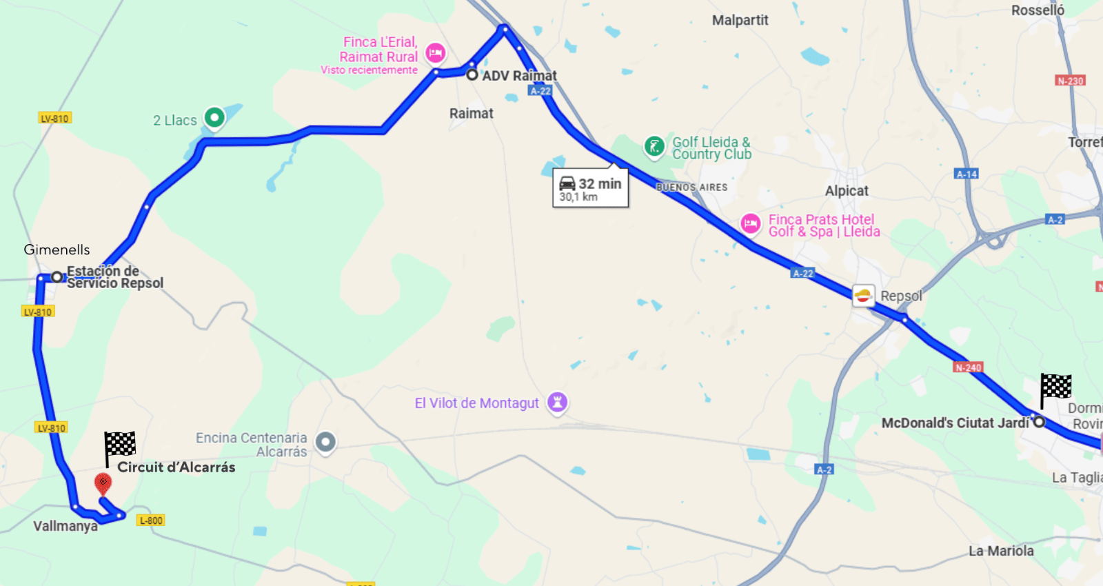 Previ avituallament a McDonald’s i revisió dels vehicles per la seva valoració per part dels jutges, es dona la sortida cap al Circuit d’Alcarràs, un dels més prestigiosos d’Espanya. Per primer cop, enguany oferirem la possibilitat d’inscripció a dues proves independents: Racing Test i Debut Circuit.